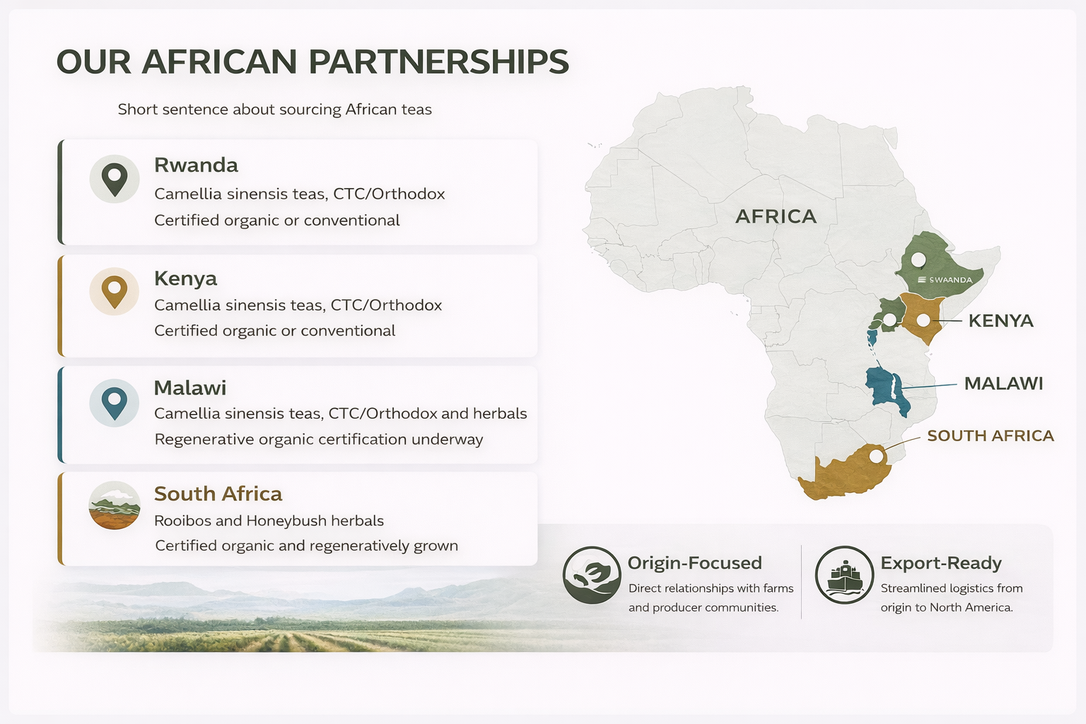 We source, import, and manage logistics for beverage manufacturers, tea blenders, and ingredient buyers seeking quality, transparency, and easier communication.